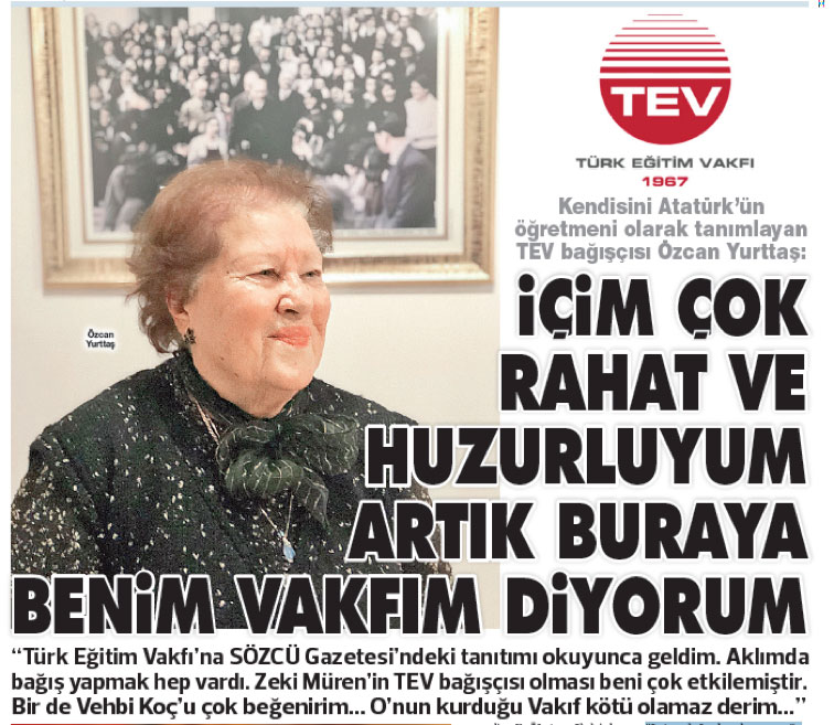 Ben Türk Eğitim Vakfı’na SÖZCÜ Gazetesi’ndeki tanıtımı okuyunca geldim. Aklımda bağış yapmak hep vardı. Zeki Müren’in TEV bağışçısı olması beni çok etkilemiştir. Bir de Vehbi Koç’u çok beğenirim. O’nun kurduğu Vakıf kötü olamaz derim. Tüm bunların üstüne bir de o tanıtımı görünce tamam dedim. Yazlıktan İstanbul’a gelir gelmez hemen buraya geldim ve bağışımı yaptım. Vehbi Koç’u sevip ona güvenen 205 iş adamı sayesinde kurulan bu sağlam Vakıf yıllarca faaliyetlerine devam eder. Türkiye’de böyle bir Vakıf yok.